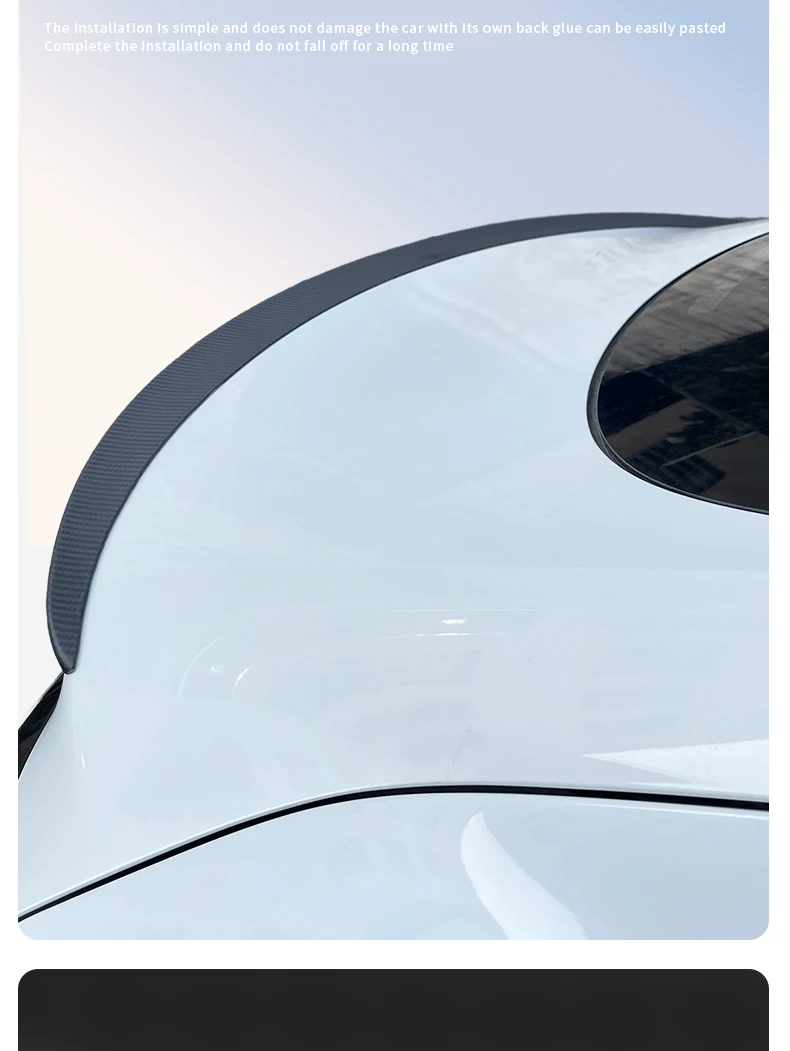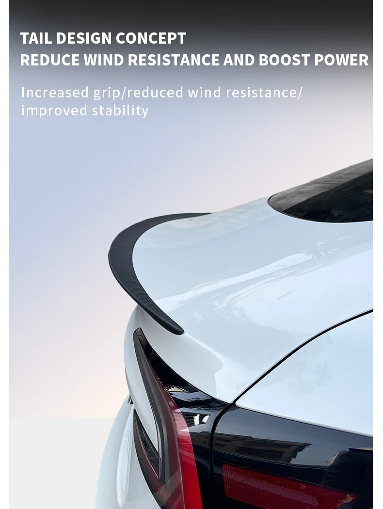 3.High Performance Functional :The rear spoiler wing for Tesla Model 3/Y/S/Highland can maintain the stability of the vehicle when at high speeds, reducing wind resistance, saving fuel, and keeping safety, make the driver feels more comfortable.