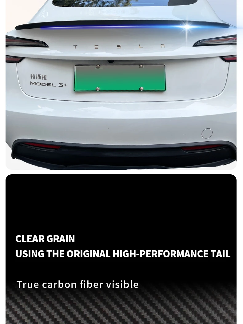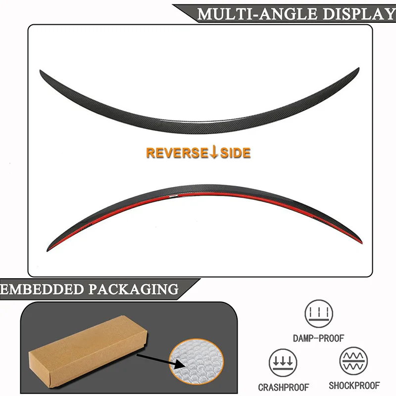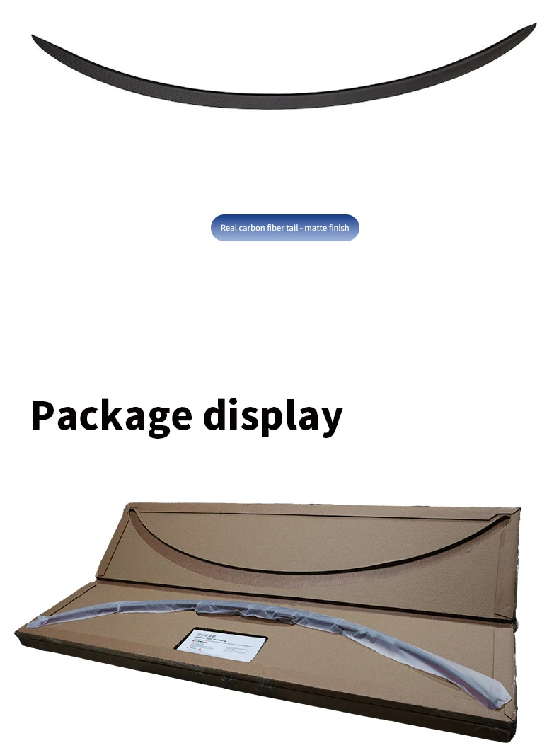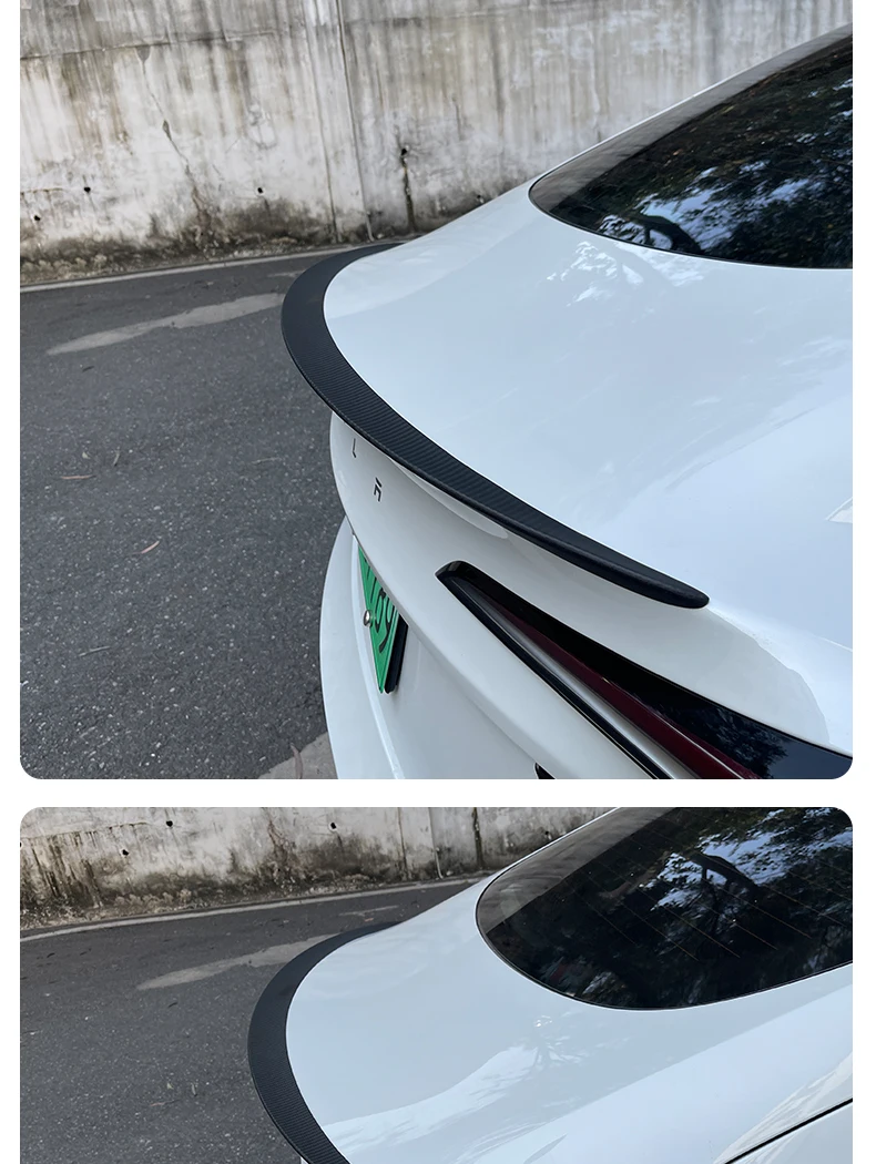 1、High Quality Material & Durable:This Spoiler for Tesla Model 3/Y/S/Highland is made of lightweight & top-grade durable real carbon fiber material with a glossy finish, make your car more luxurious. The box is light since it's real carbon fiber.