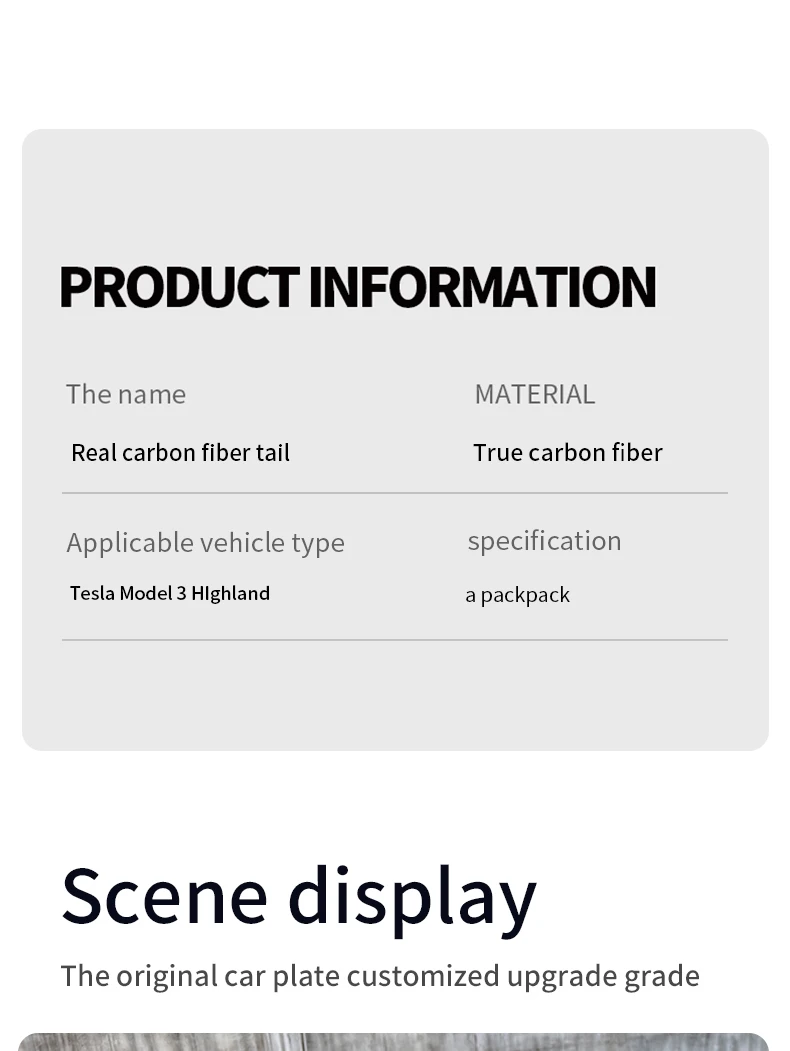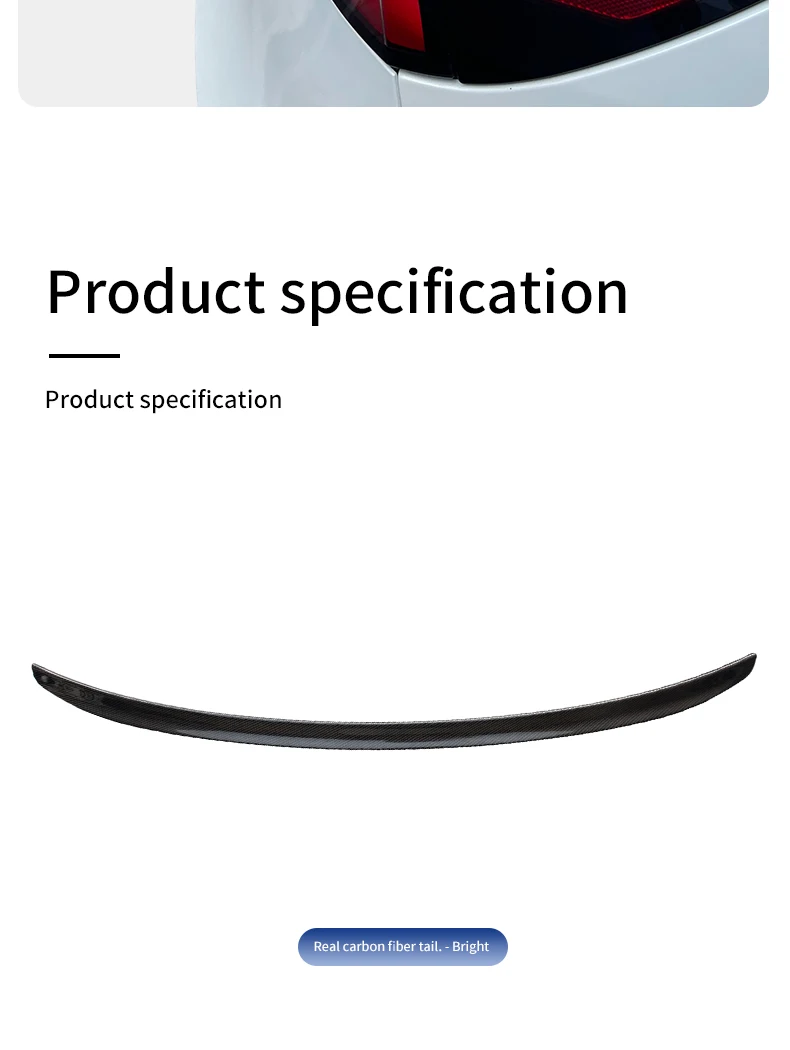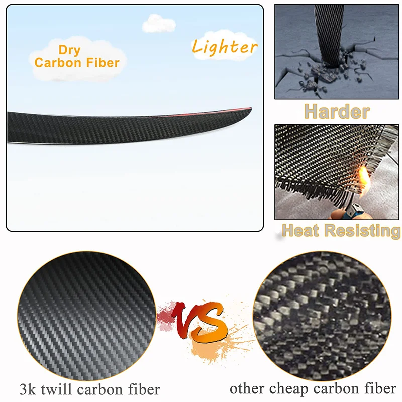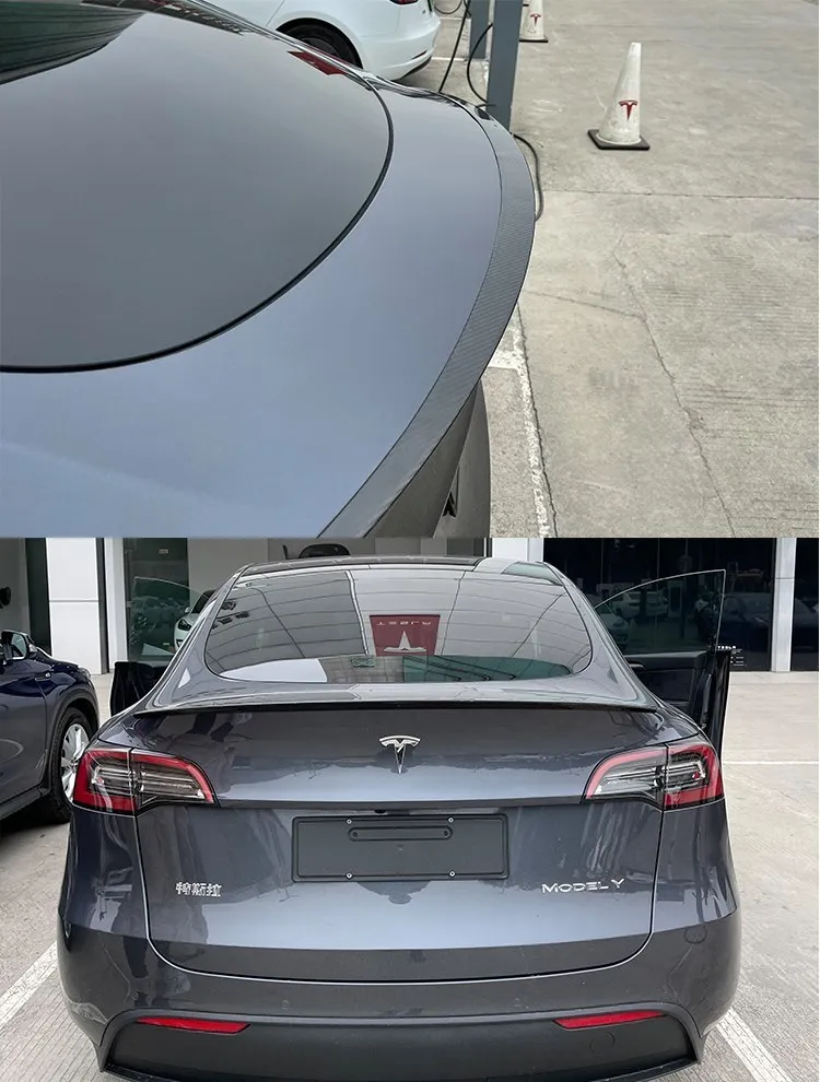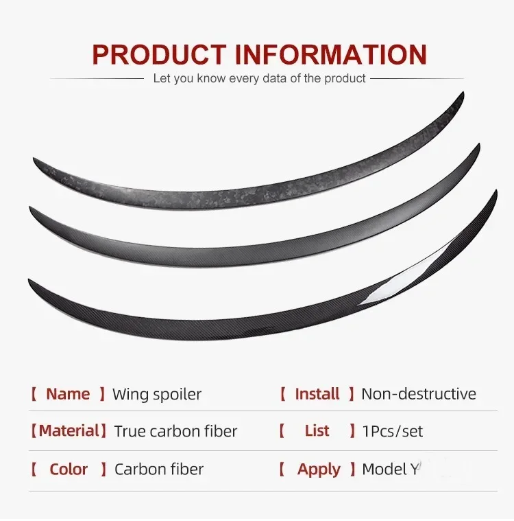 1、High Quality Material & Durable:This Spoiler for Tesla Model 3/Y/S/Highland is made of lightweight & top-grade durable real carbon fiber material with a glossy finish, make your car more luxurious. The box is light since it's real carbon fiber.