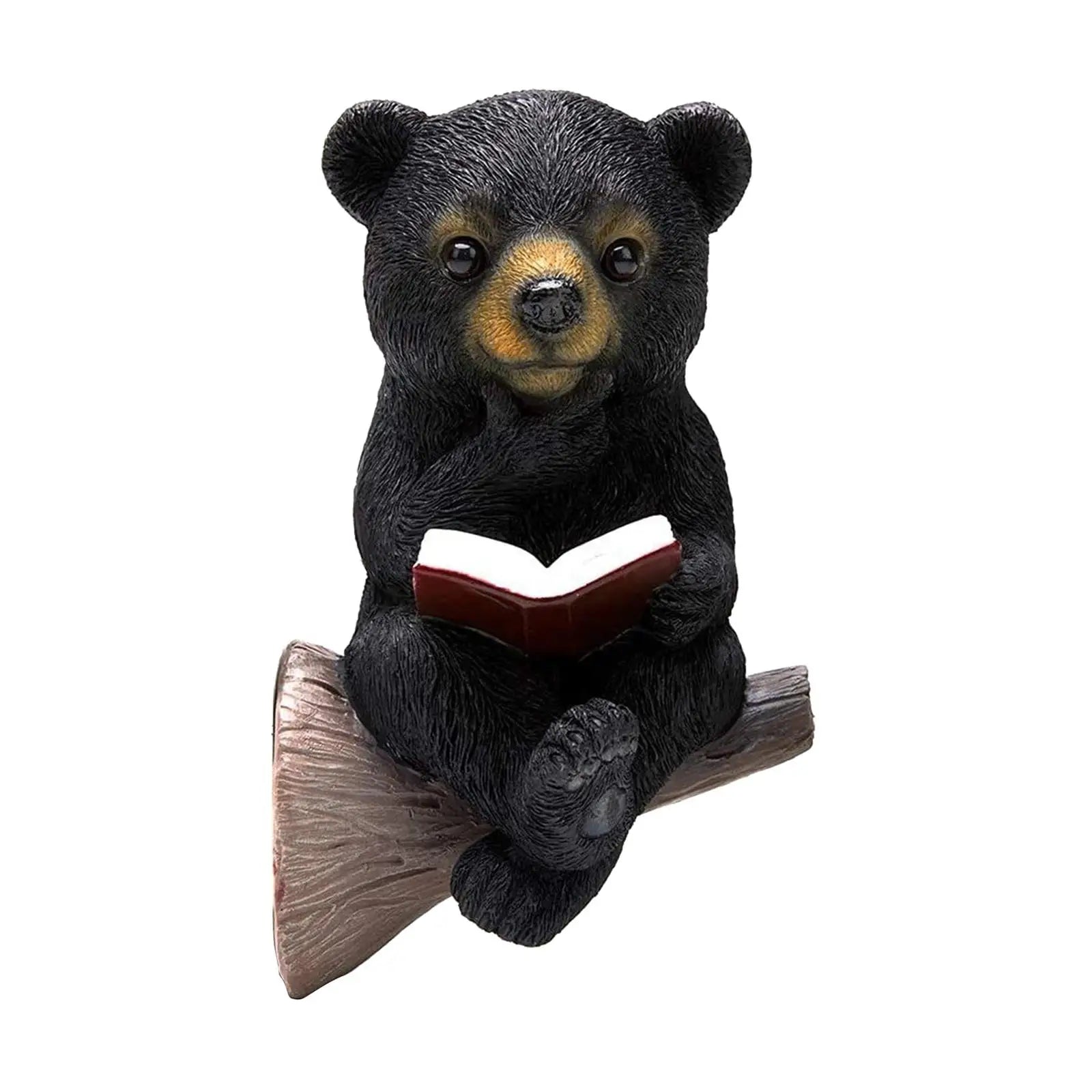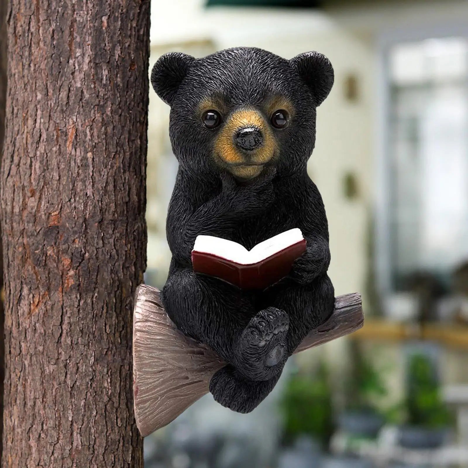 【PERFECT DESIGN】: Add personality and surprise to tree in your yard with this black bear cub who is reading book carefully sit on trunk. Cleverly equipped with solar light on book to illuminate the night and the bear seemed more serious.