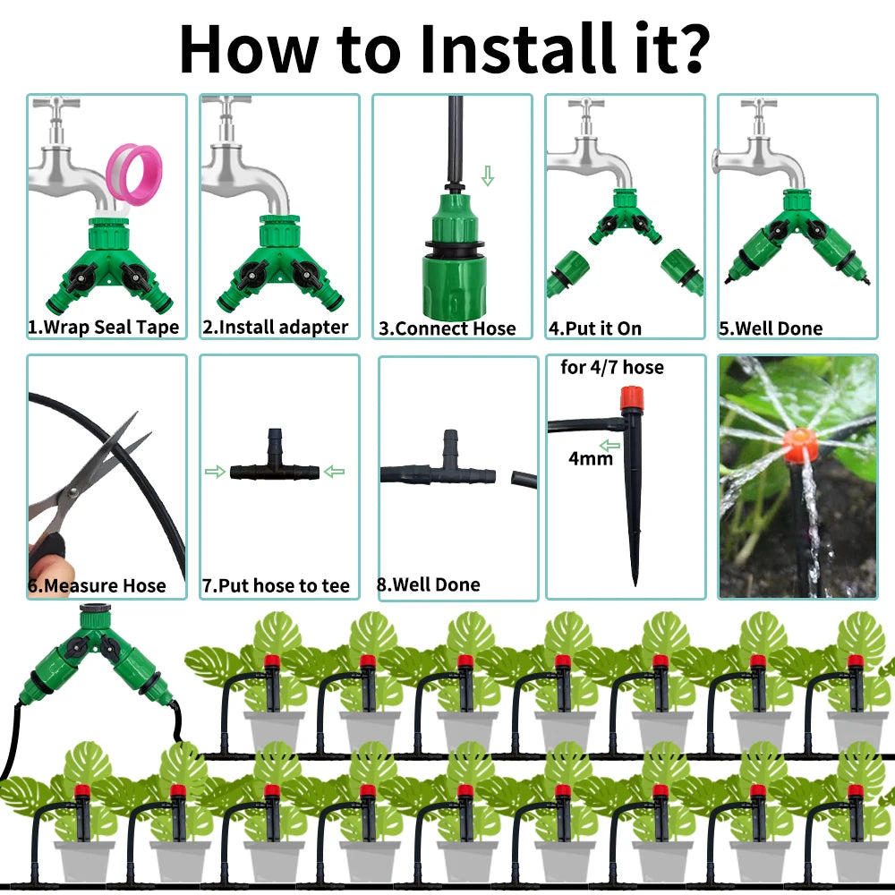 Garden Drip Irrigation Automatic Watering System Kit 1/4'' 13CM Sprinkler for Bonsai Pot Plant Flower Vegetable Greenhouse