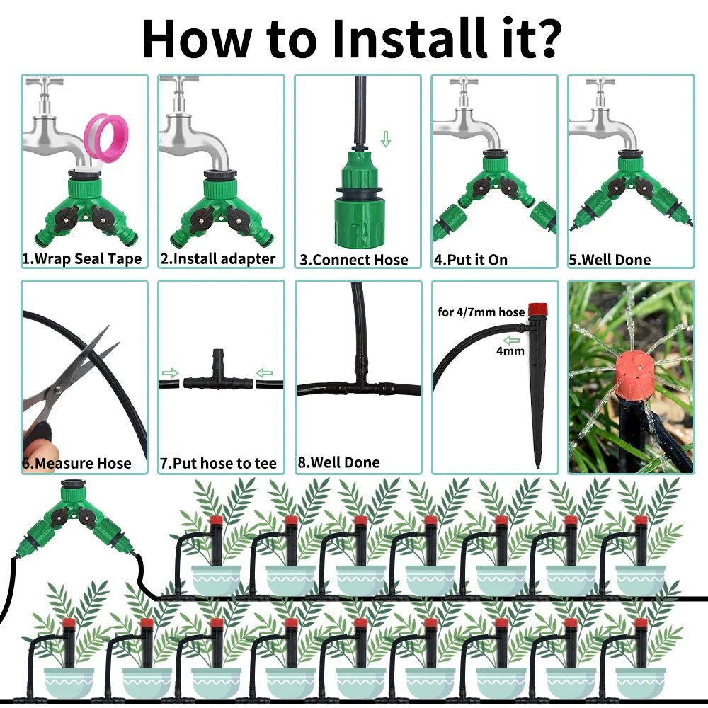 Garden Drip Irrigation Automatic Watering System Kit 1/4'' 13CM Sprinkler for Bonsai Pot Plant Flower Vegetable Greenhouse