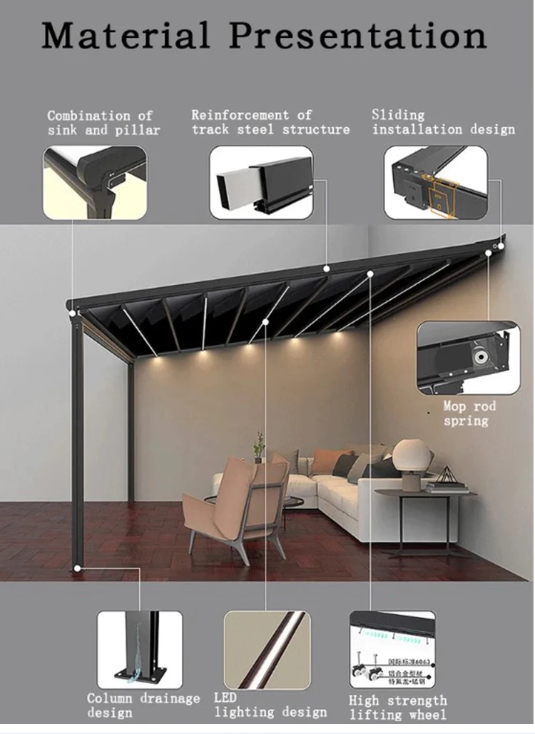 Gazebo Outdoors Aluminium Folding Tent Winter Tent Camping Tent Marquise Retractable Canopy Marquise Retractable Pergola Carport