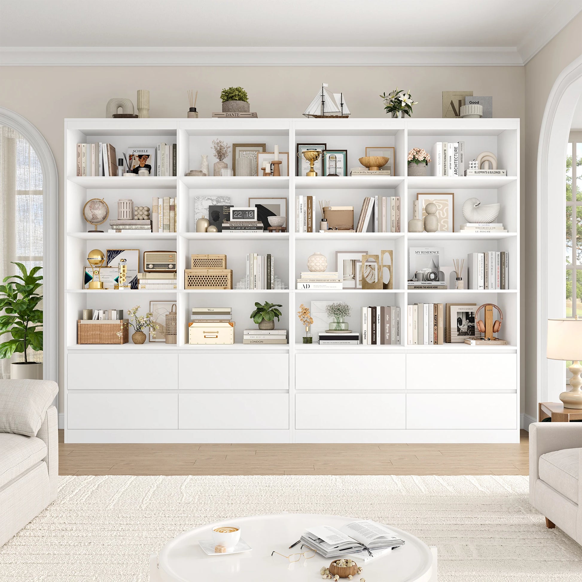 Getone Bookshelf 6 Tier Bookcase White with Drawers 8 Open Compartments Bookshelf Living Room Bookcase Tall Shelving Unit Free Standing Display Cabinet for Office Home 180x120x30cm