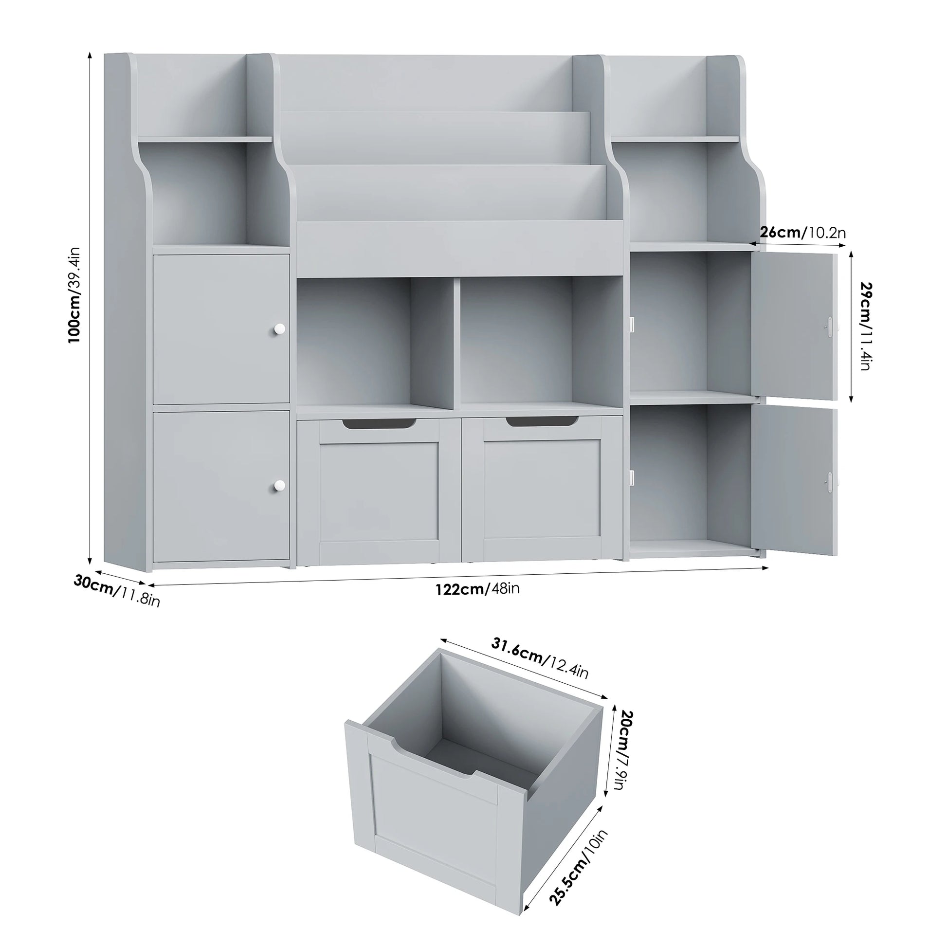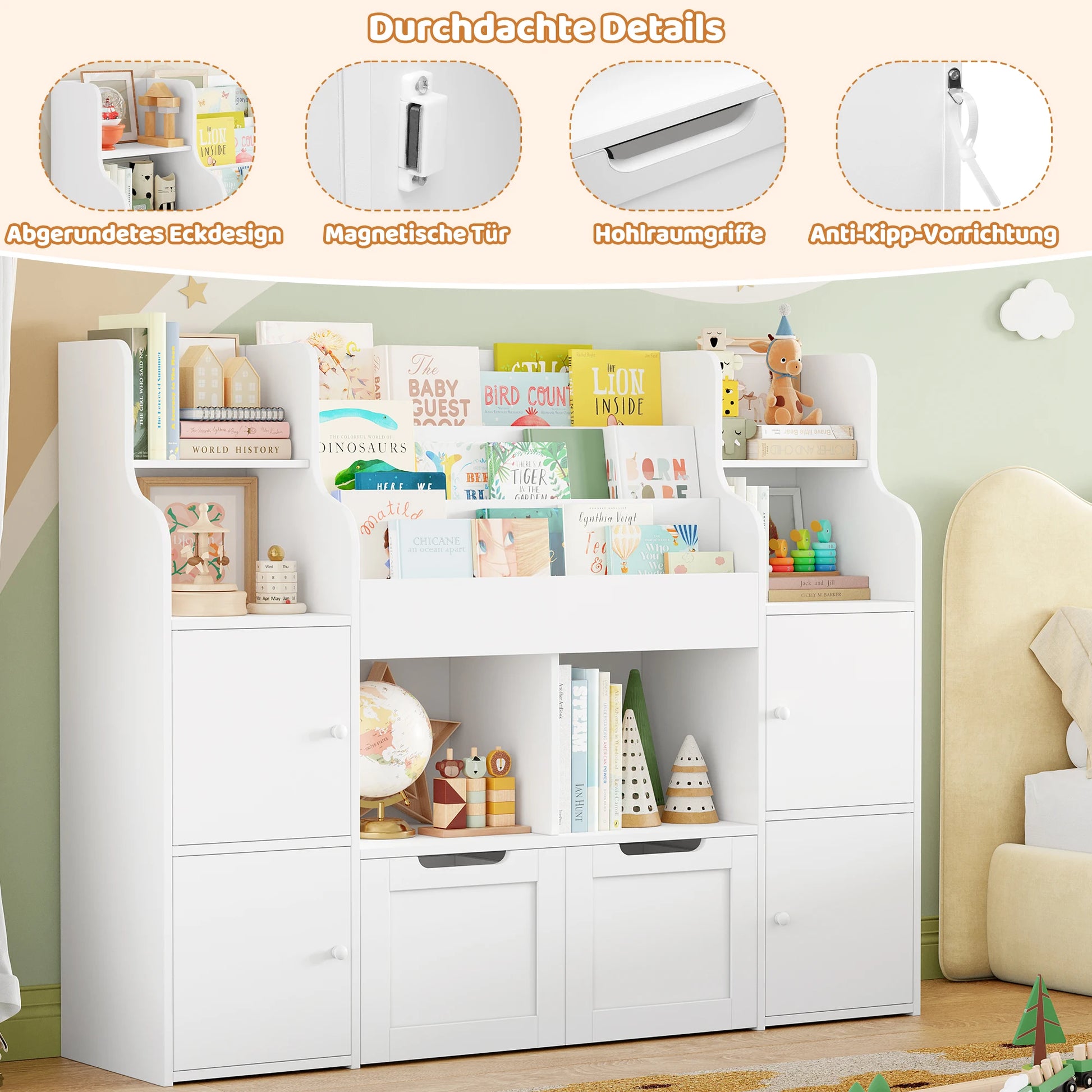 Getone CHILDREN'S room, children's shelf furniture, toys chest, Bookcase, CHILDREN'S wardrobe with 13 shelves 2 doors 2 drawers 122x30x100cm