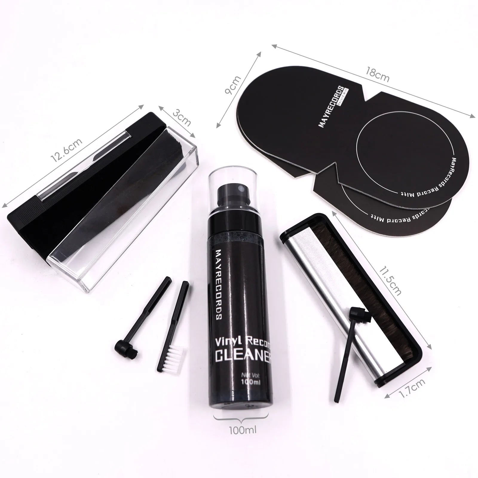 02:Velvet brush with stylus+100ml cleaning solution+carbon fiber brush+black disc clip