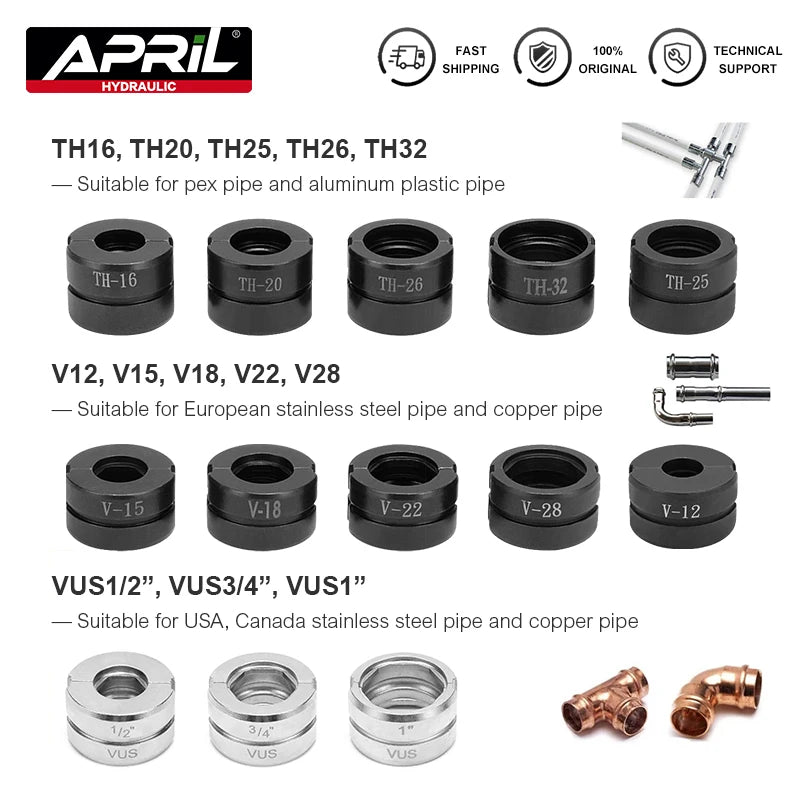 Hydraulic Pipe Crimping Jaw TH U Pipe for Pex Fittings and V M VAU VUS Pipe press moulds for Cooper Cube