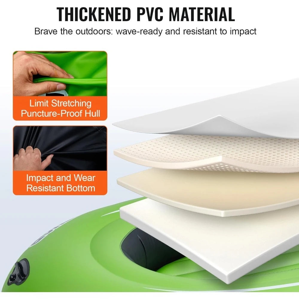 - Enhanced PVC Durability: Constructed from thick, enhanced PVC, this inflatable raft boasts superior tensile strength and puncture resistance, ensuring reliable performance in marine conditions. Its large, thick base enhances stability and is designed to resist cuts and wear from sand when beached.