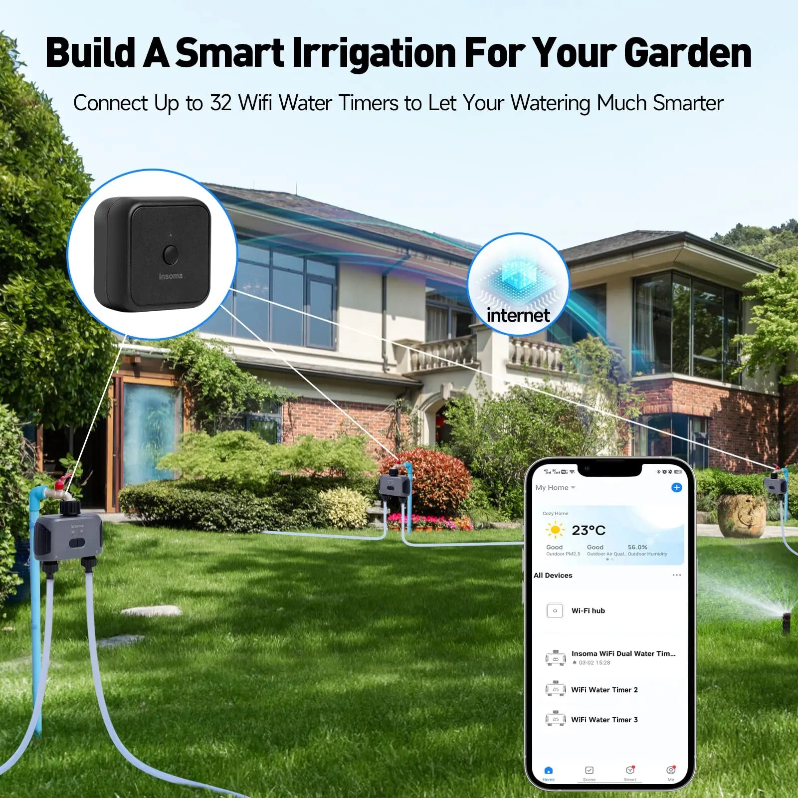 Insoma Automatic Water Timer with Wifi Hube 2-Outlet Garden Irrigation Watering System Sprinkler Programmer Tools support Alexa