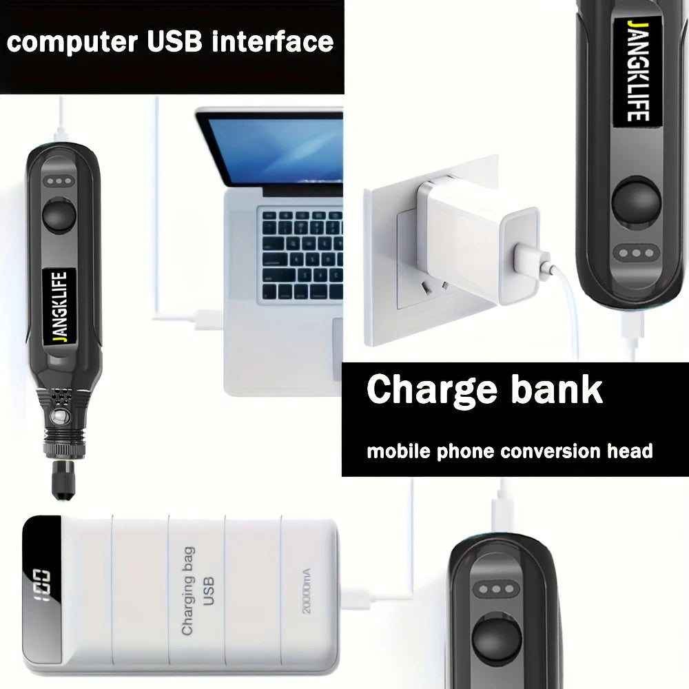 JANGKLIFE USB Cordless Rotary Tool Kit Woodworking Engraving Pen DIY For Jewelry Metal Glass Mini Wireless Drill