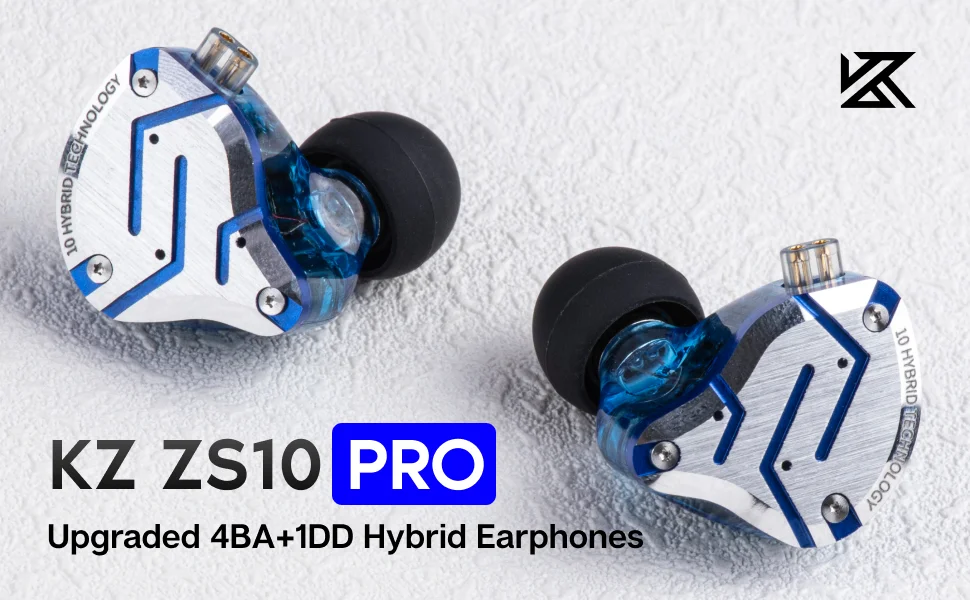 KZ ZS10 Pro 4BA+1DD 5 Driver in-Ear HiFi Metal Earphones with Stainless Steel Faceplate, 2 Pin Detachable Cable