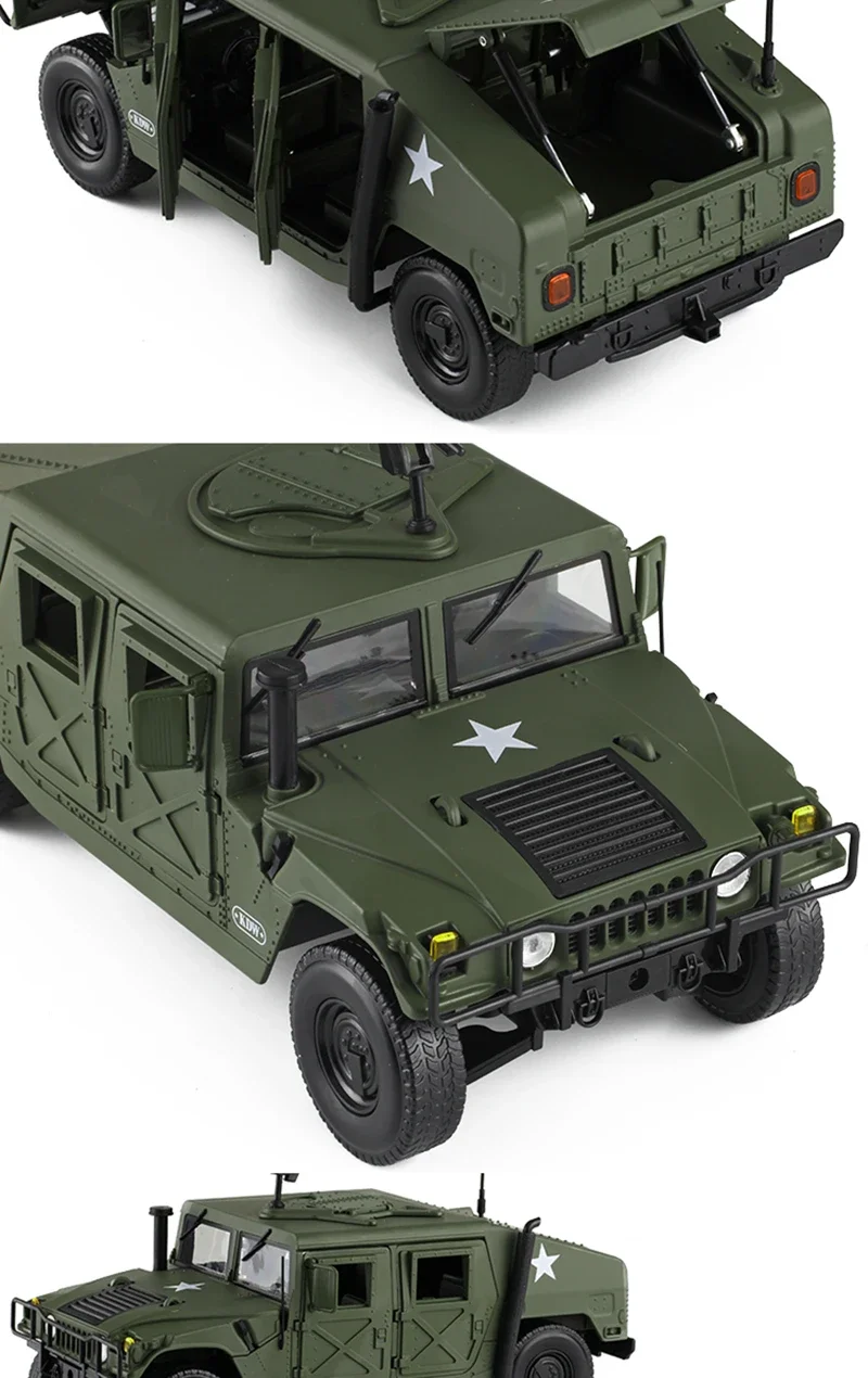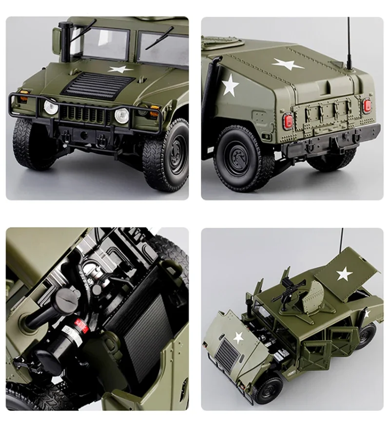 Large Size 1:18 Hummer H1 Military Explosion Proof Car Model Alloy Diecast Simulation Toy Armored Car Metal Tank Model Gift