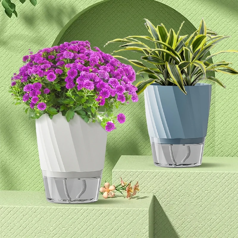 Lazy Self Watering Planter Pots Double Layer Hydroponic Flower Pot Succulent Potted Planters Bonsai Pot Home Office Garden Decor