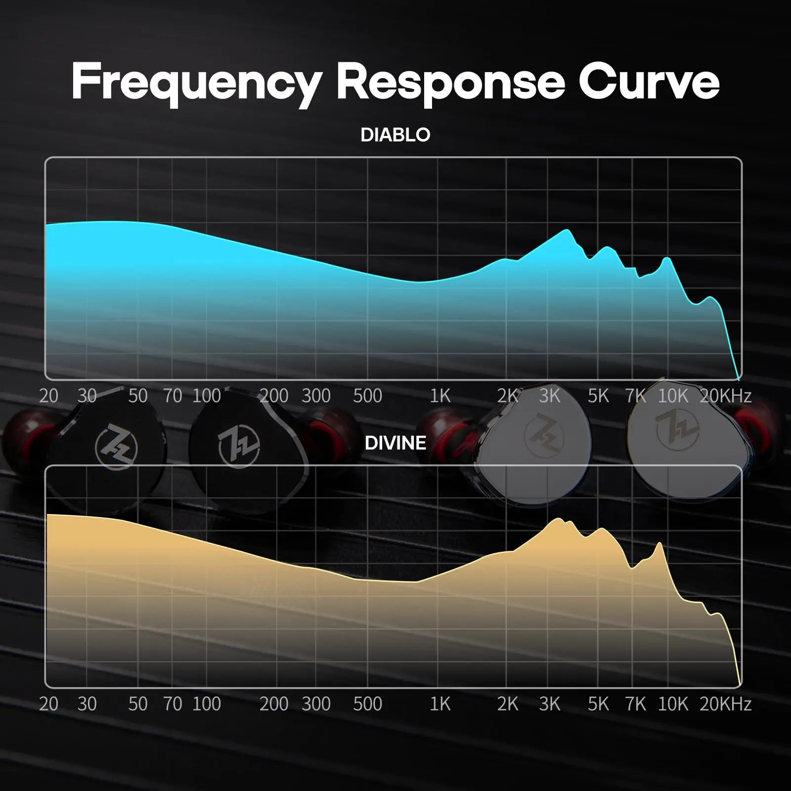 Both the Diablo and Divine feature a precise tuning strategy, featuring an exact 3kHz pinna curvature to match the perceived hearing of the human ear. Both models have a natural treble decay that provides ample micro-details and air, while maintaining a comfortable and smooth listening experience for all music genres. The Diablo boasts of a 12dB bass boost, which is perfect for hip-hop, EDM, and rock genres, with thick and rich mid-bass to bolster bass guitar and male vocals. The Divine has a more moderate 10dB bass shelf with a more subtle mid-bass transition, allowing the midrange to be more balanced and natural, without additional coloration.