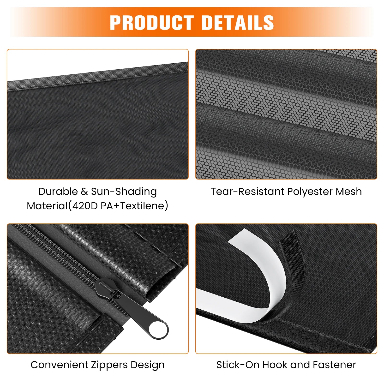 Enjoy full privacy without sacrificing airflow! The mesh design blocks sunlight while allowing ventilation, preventing heat buildup.