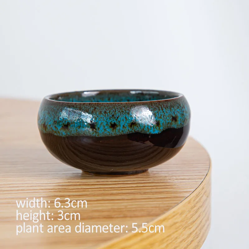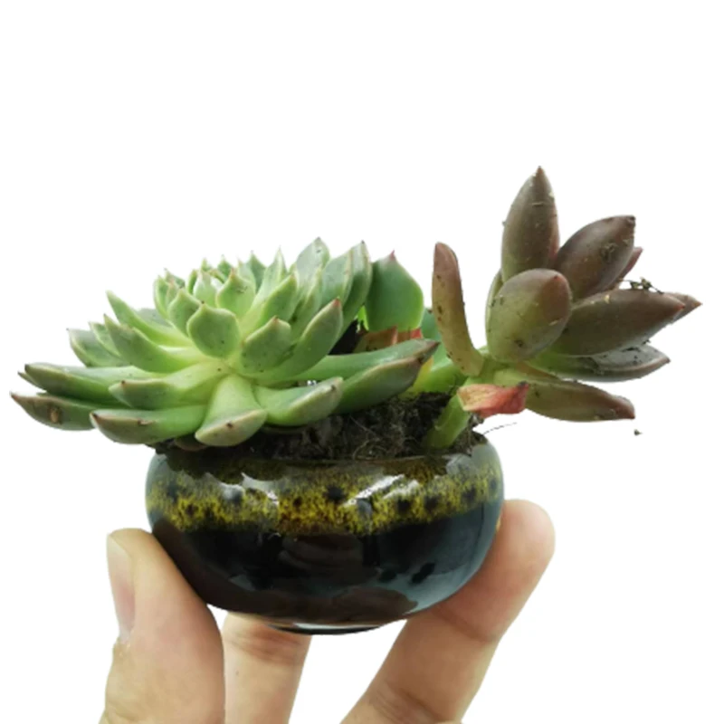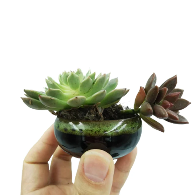 Ceramic Green Succulent Flower Pots Ceramic Kiln-Changed Succulent Living Room Decoration Plant Crafts Pots Multiple Colors