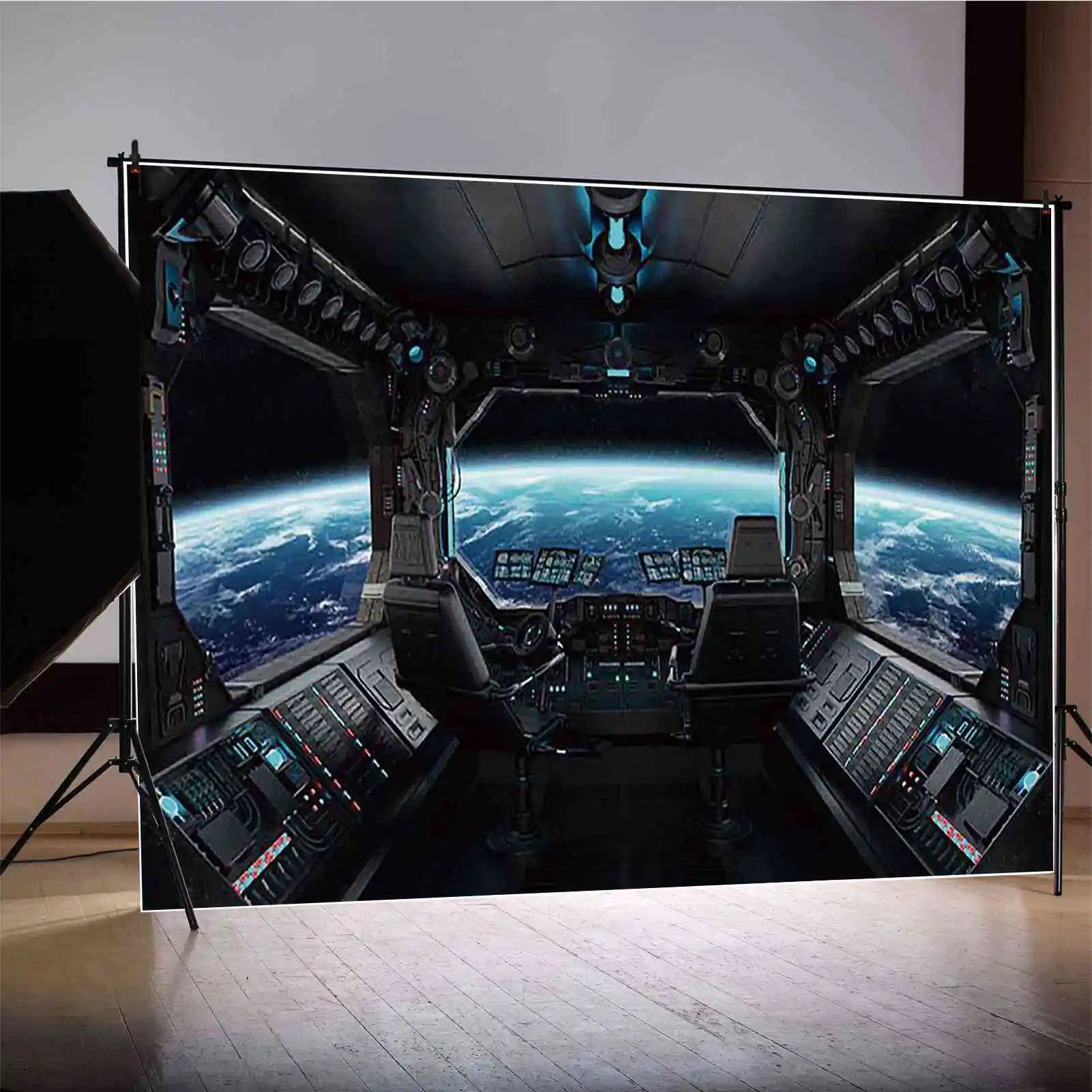 MOON.QG Baby Shower Boy Birthday Party Universe Cockpit Backgrounds for Photographs Spaceship Backdrop Photo Studio Photozone