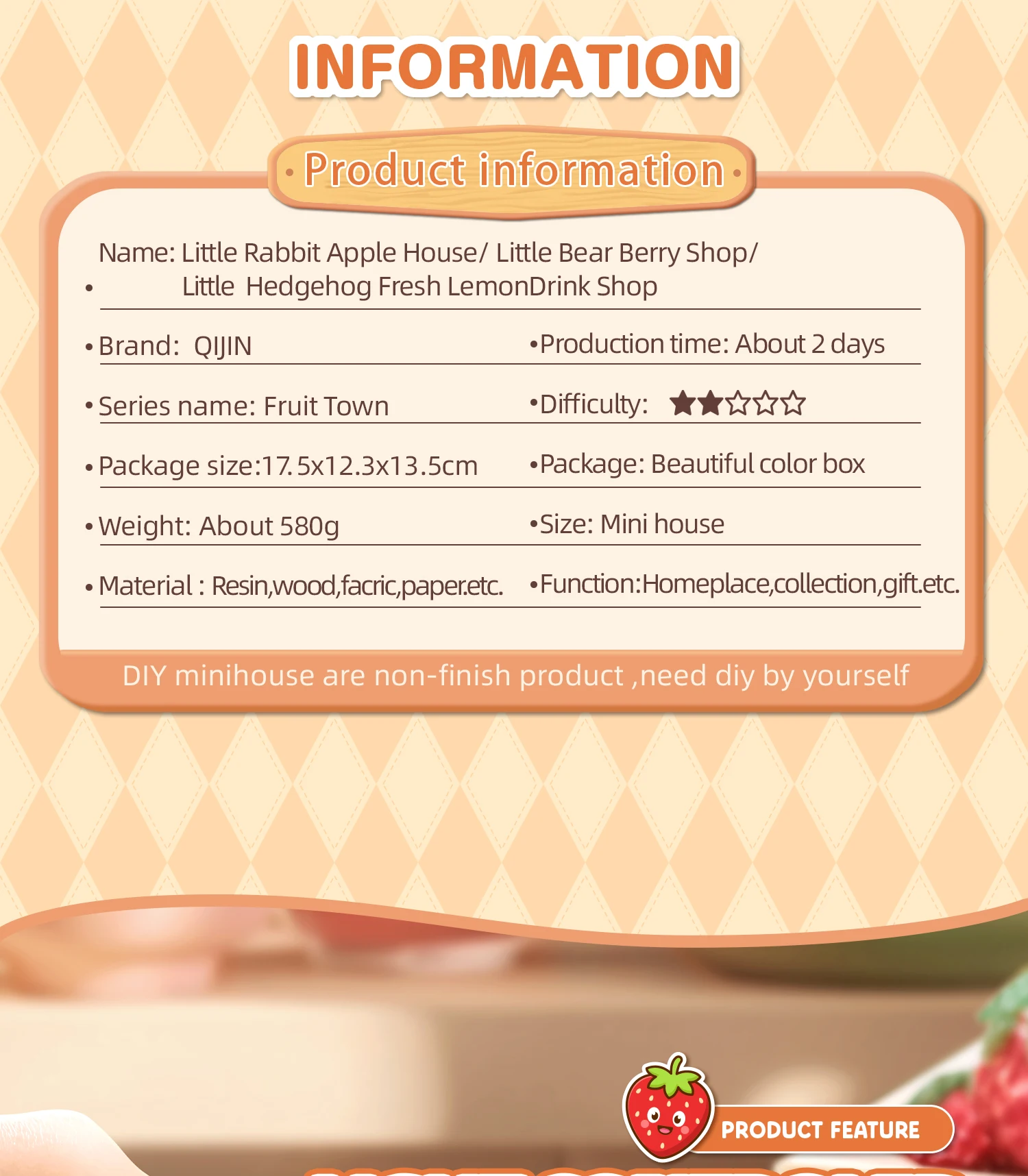 3.Photo shows finished dollhouse,but you receive are spare parts,build by yourself !