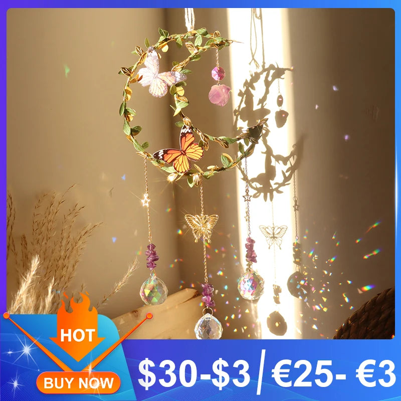 New Style Star Moon Crystal Wind Chime Butterfly Hanging Rainbow Chaser Diamond Prisms Pendant Dream Catcher Home Garden Decor