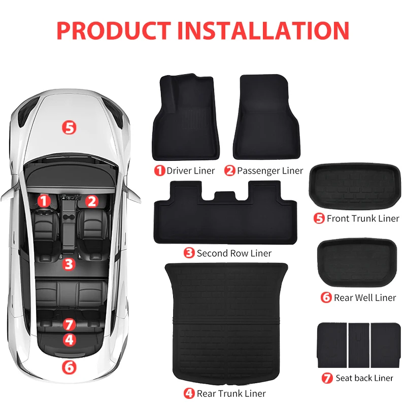 Suitable for Tesla Model Y, Model 3 floor mats, trunk mats, and seat back protective mats