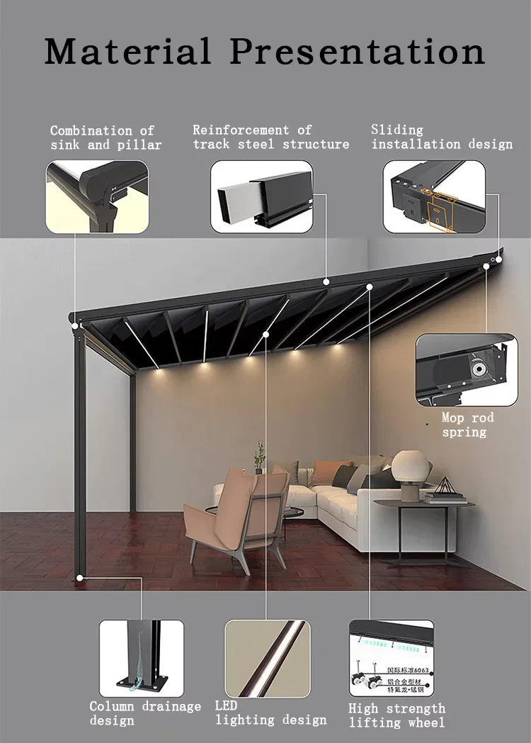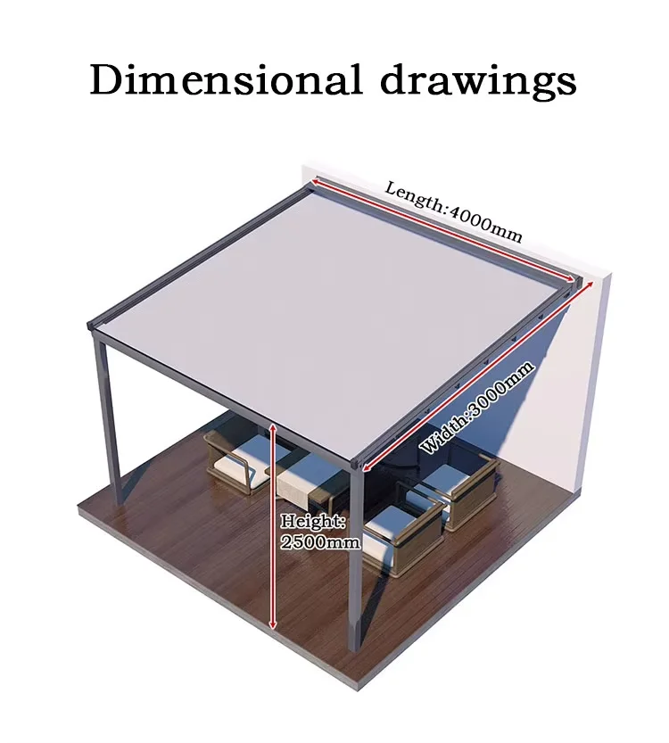 Outdoor Aluminium Folding Courtyards Terrace Outside 3X6M Pavilion Eaves Tents Gazebo Pergola Sunroom Door Awning Gazebos