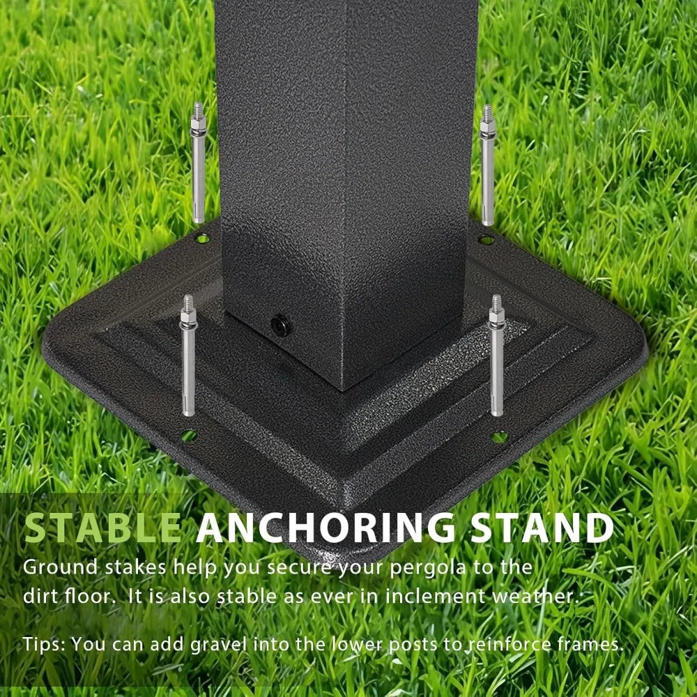 - Spacious and Stable: Featuring the size of 12 x 10 FT, this piece of product provides plenty of room for several persons. Ground stakes help you secure your pergola to the dirt floor. It is also stable as ever in inclement weather