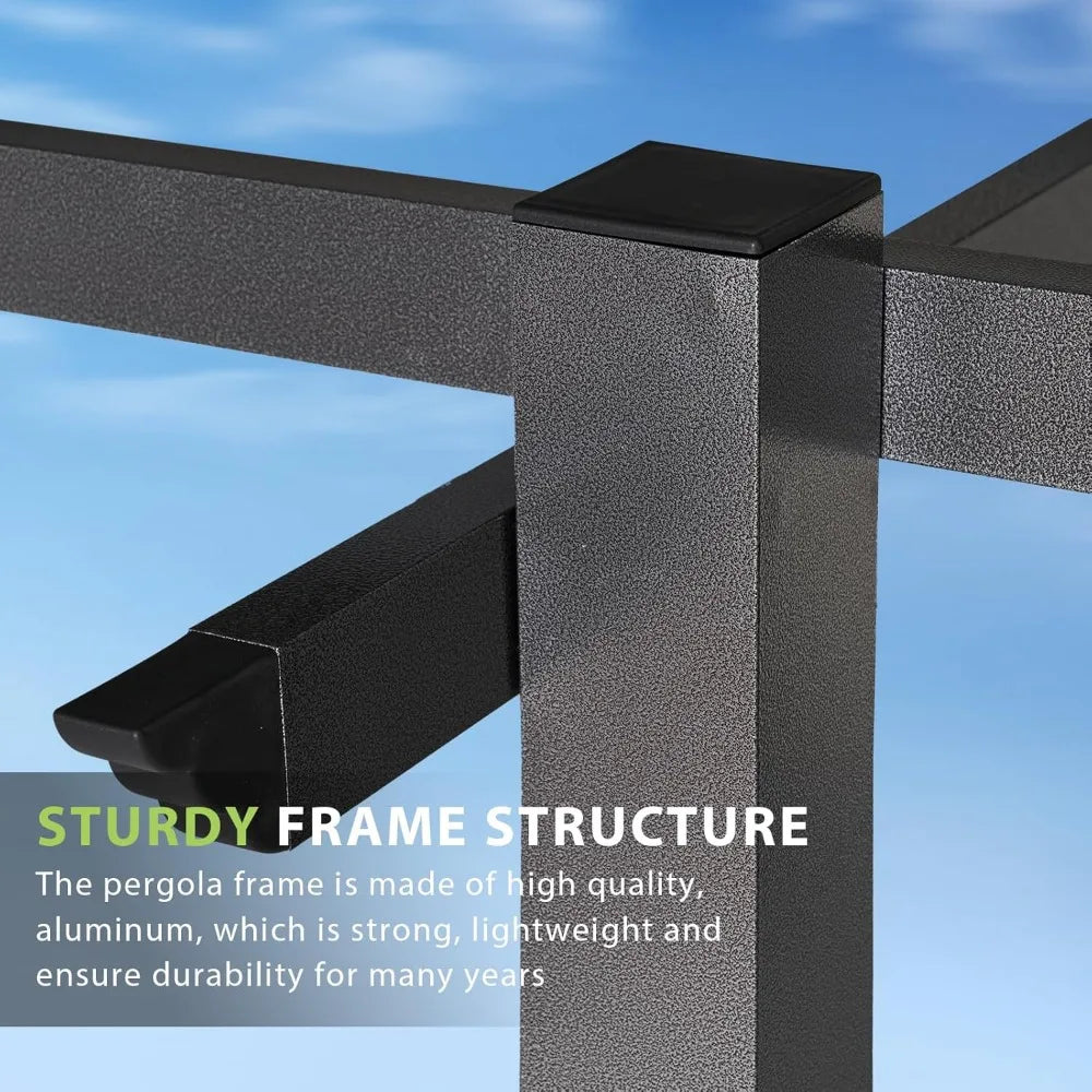 - Versatile and Spacious: This piece is weather-resistant, water-resistant, and UV-resistant. Made by premium aluminum frame with powder coating finished. The pergola is not easy to rust or corrosion, making it a durable and great option for outdoor use