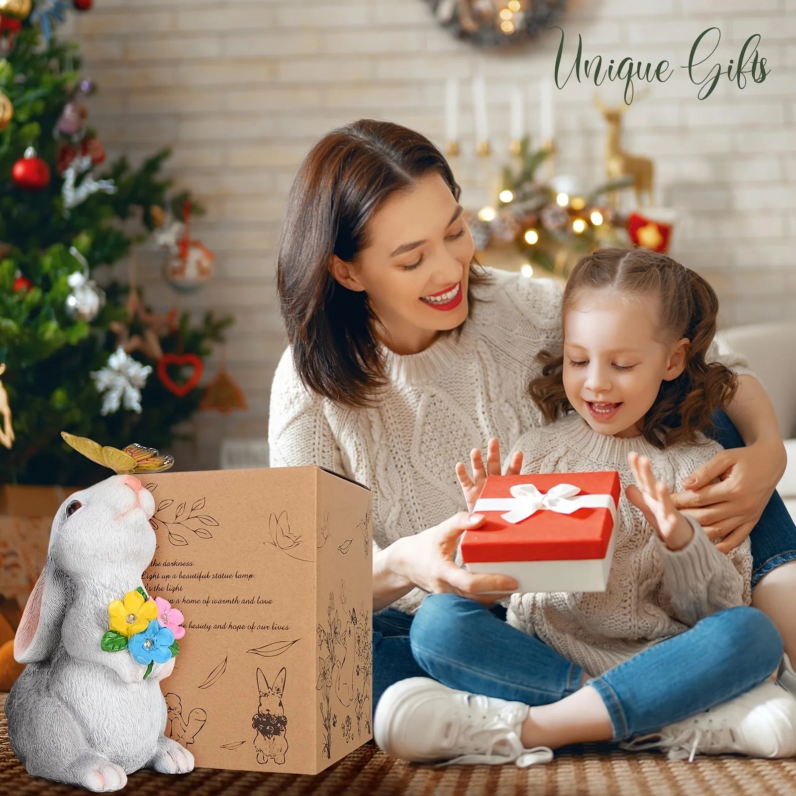 Outdoor Rabbit Statue Decoration With Solar Powered Butterfly Light Resin Art Deco Rabbit Figurine For Garden Lawn Patio