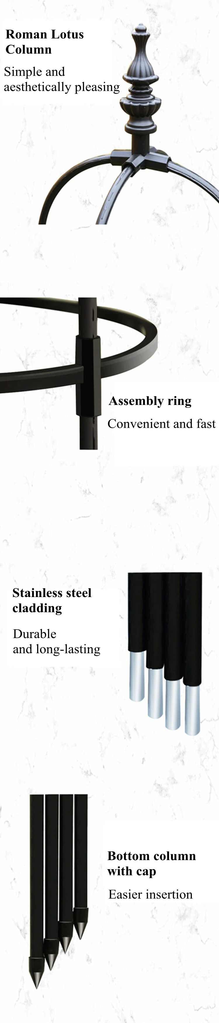 1、High-Quality Material: The plant climbing trellis uses thickened steel pipe as the inner tube, which has a long service life. The outer resin is coated with plastic to avoid the heating of vines in high temperature in summer. The steel tube is hollow inside, which is light and not bulky.
