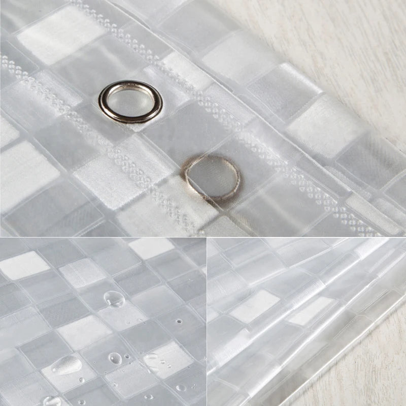 Plastic PVC 3d Waterproof Shower Curtain Transparent White Clear Bathroom Anti Mildew Translucent Bath Curtain With 12 PCS Hooks