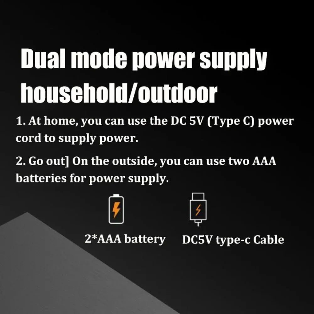 DC: 5V---0.5A,2*AA battery