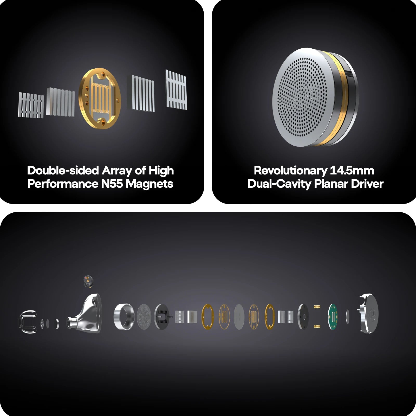 Both the Diablo and Divine feature the same driver technology. A third-generation 14.5mm planar magnetic driver has been developed for this project. Featuring a double-sided array of N55 magnets, this driver uses one of the strongest magnets to be featured in an IEM format. The diaphragm consists of ultra-pure components imported from Japan, while high-purity copper components are precision magnetron sputtered in a two-step coating process. Combined with the N55 magnets on both sides, the new diaphragm achieves exceptional responsiveness compared to previous generations of planar drivers.