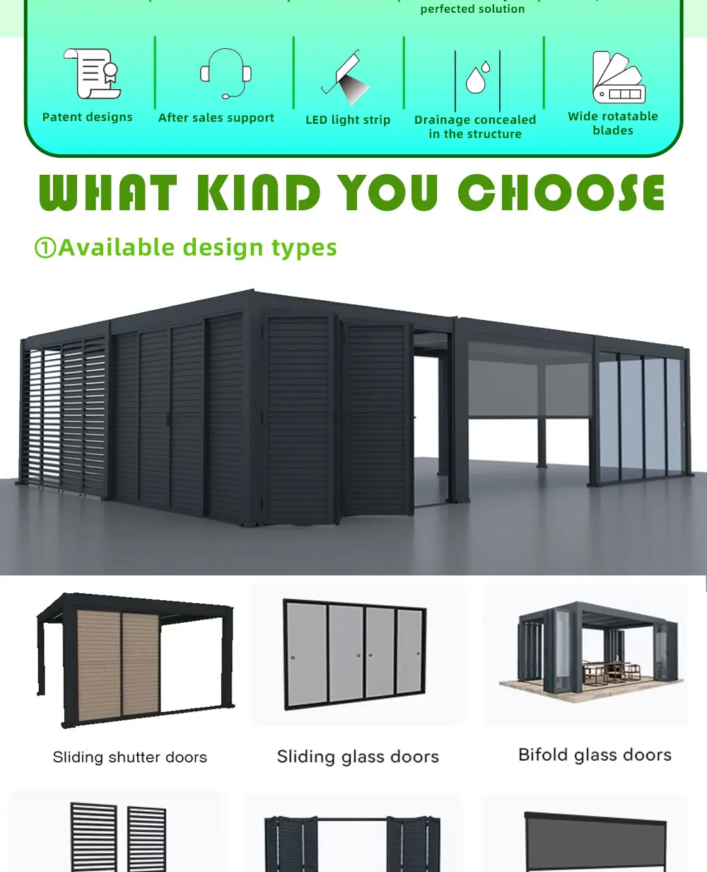 Premium Motorized Aluminum Pergola with Privacy Folding Screens and Glass Wall Enclosures – Outdoor Garden or Patio Shad