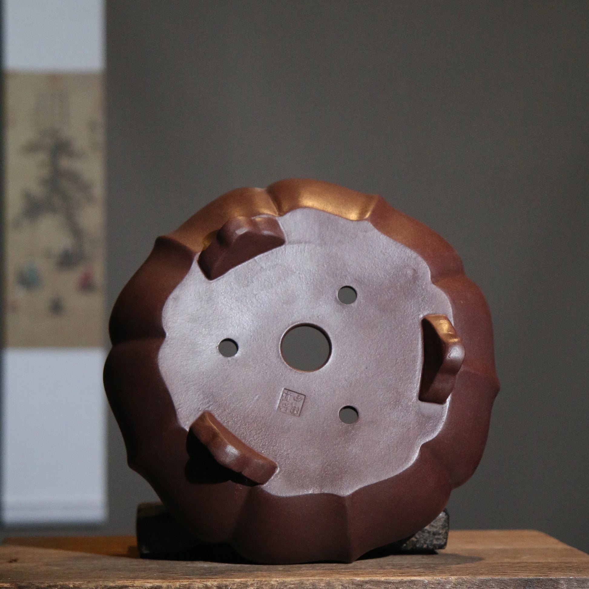 Purple Sand Bonsai Pot Vase, Chinese Shape, Carved, Home Room, Desk, Table, Garden Decoration