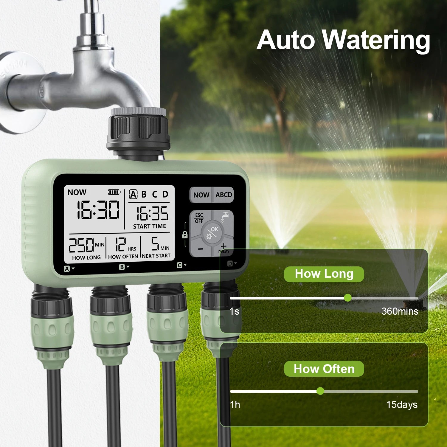 Reswat 4-Outlet Water Timers Multifunctional Sprinklers Multi Caliber Adaptation Convenient Installation Youngs Garden Tools