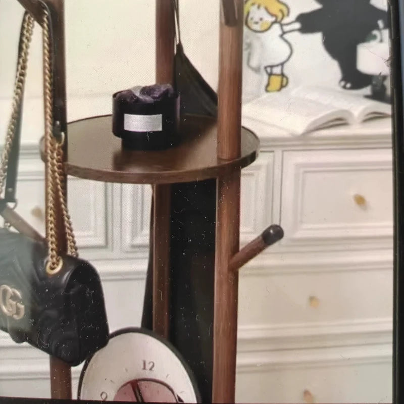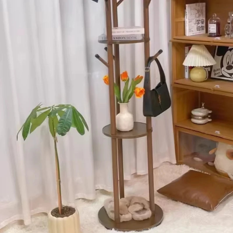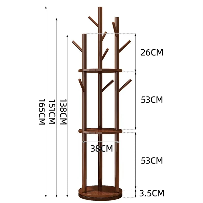Rotating Wooden Coat Rack Durable Floor Standing Clothes Hanger Bedroom Clothes Rack Stand Space-Saving Storage Rack
