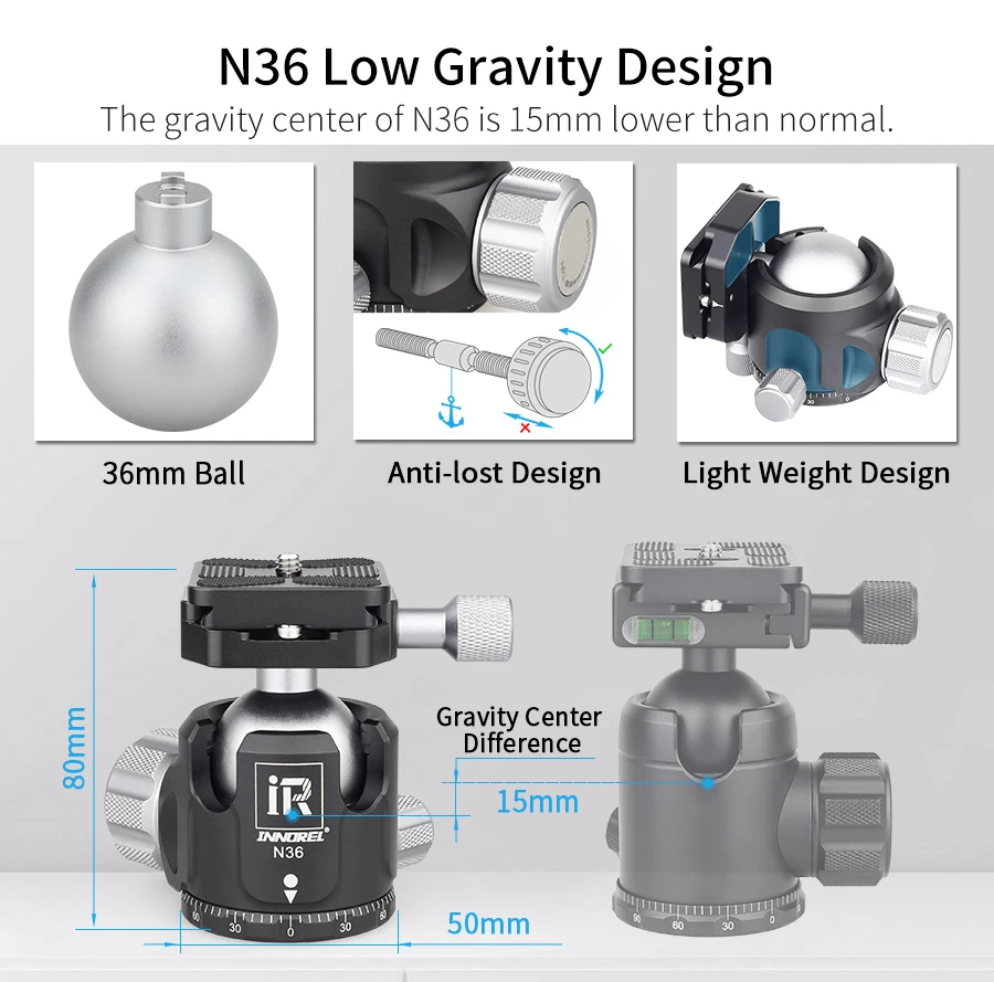 【Panoramic Ball Head】This tripod is equipped with a high quality panoramic ball head,it also have real 36mm ball diameter and anti-lost design.