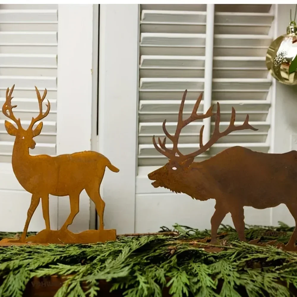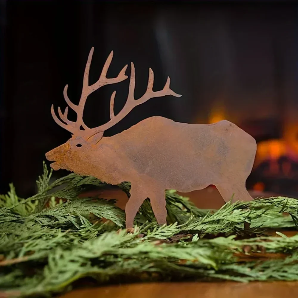 Rustic Metal Spruce Tree & Elk Ornaments: Ideal Hunting Decor & Gifts for Christmas and New Year's Holiday Celebrations