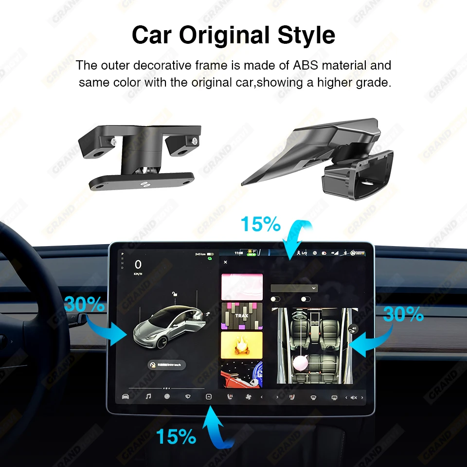 Screen Rotating Holder can be moved up and down 15°, left and right 30°, flexible adjustment in four directions, hidden design bid farewell to the trouble of fixed screen, humanized viewing angle design makes your Tesla more stylish and beautiful.