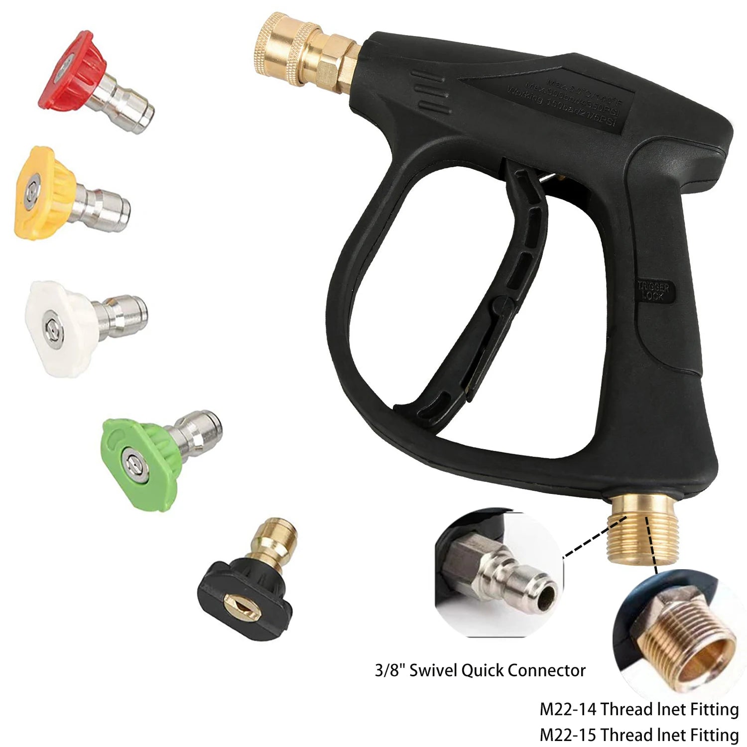 Short Handle High Pressure Washer Gun with 5 Replacement Spray Nozzle Tips For Car Washing And Garden Cleaning Tools