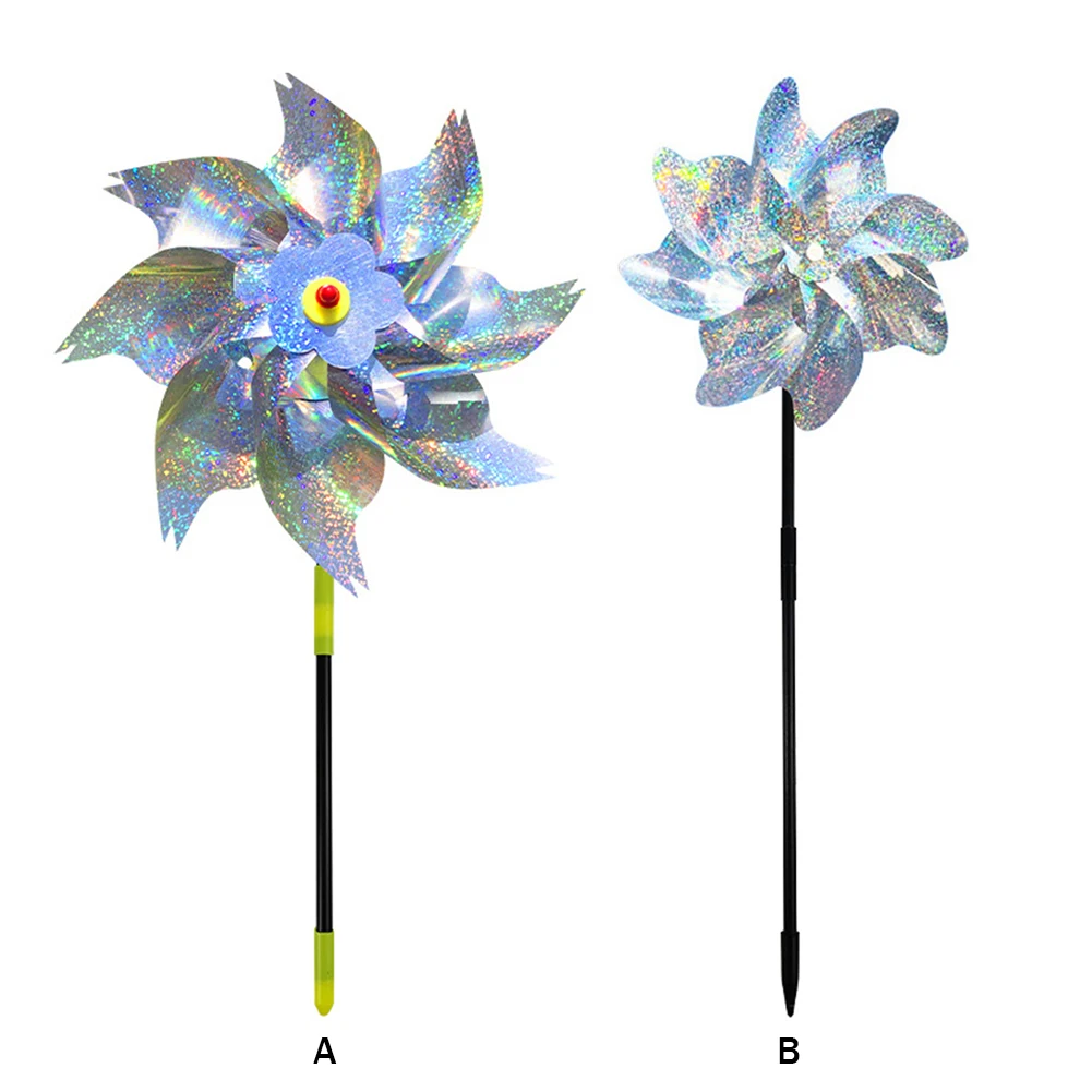 Silver Anti Bird Laser Windmill Bird Repeller Windmill Pinwheels Reflective Bird Scare Deterrent Driving Windmill Garden Decor