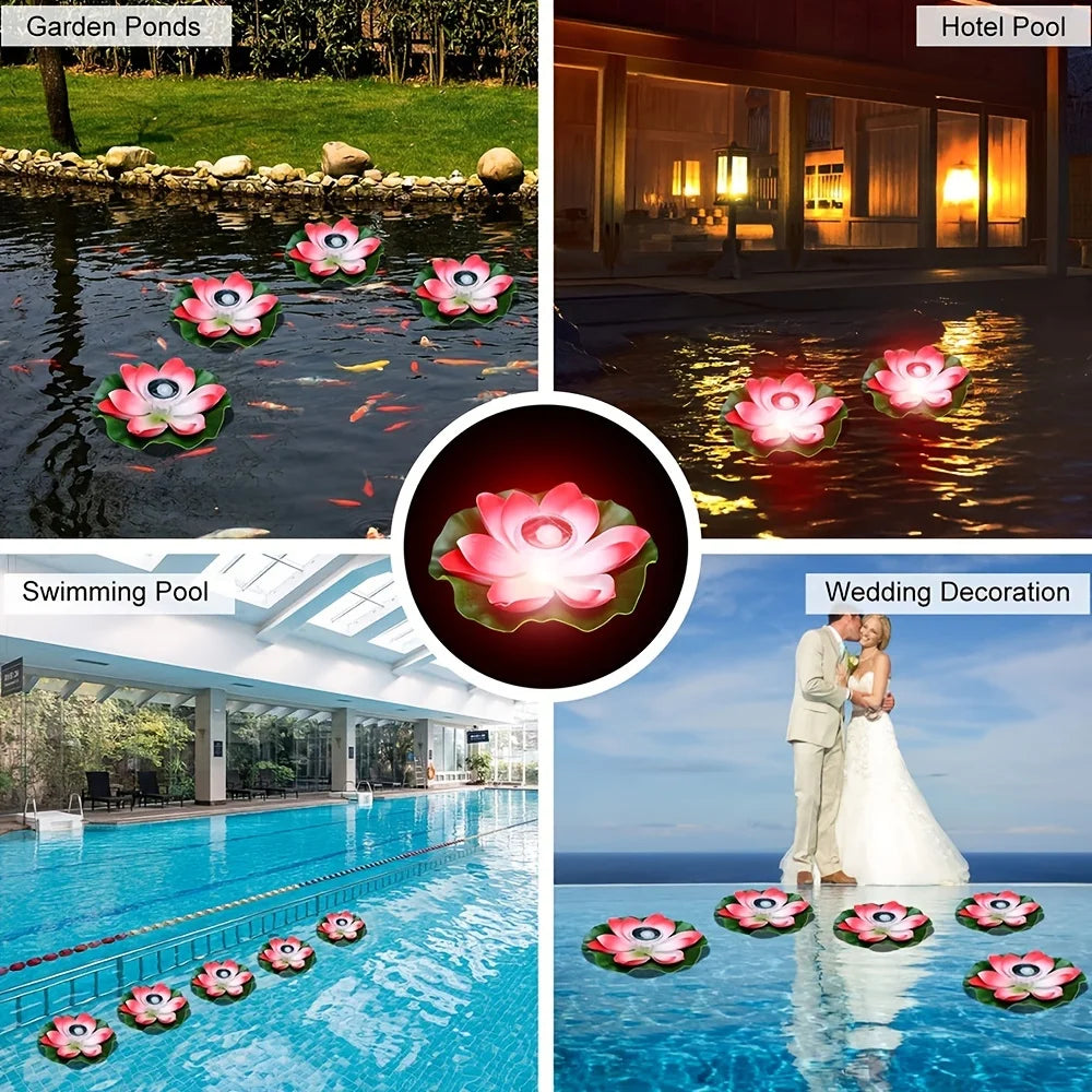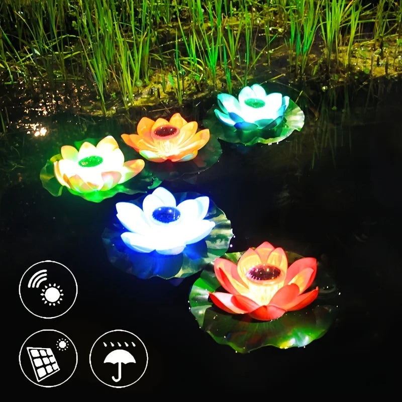 Solar Artifical Floating Lotus LED Light Solar Powered Night Pool Light Lotus Lamp Garden Pond Fountain Decor Outdoor Lighting