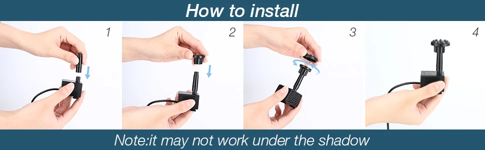 When the solar panel receives sufficient sunlight, the water pump will start within 3 seconds.