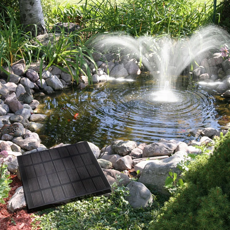 Solar Fountain Pump Panel Powered Water Kits Aquarium Pond Lawn Low Noise Outdoor Bird Bath Garden Decor with 6Nozzles