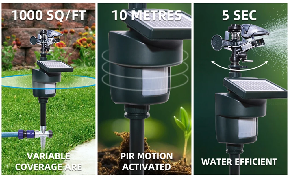 Solar Motion Sensor Sprinkler Eco-friendly Jet Spray Animal Repeller with Solar Panel Garden Pest Bird Control Repellent