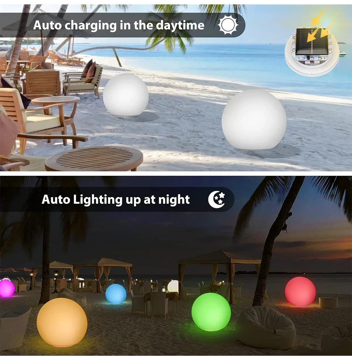 Solar Rechargeable LED Ball Light Color Changing Solar Globe Lamp IP67 Waterproof Outdoor Garden Light for Bar Yard Patio Path