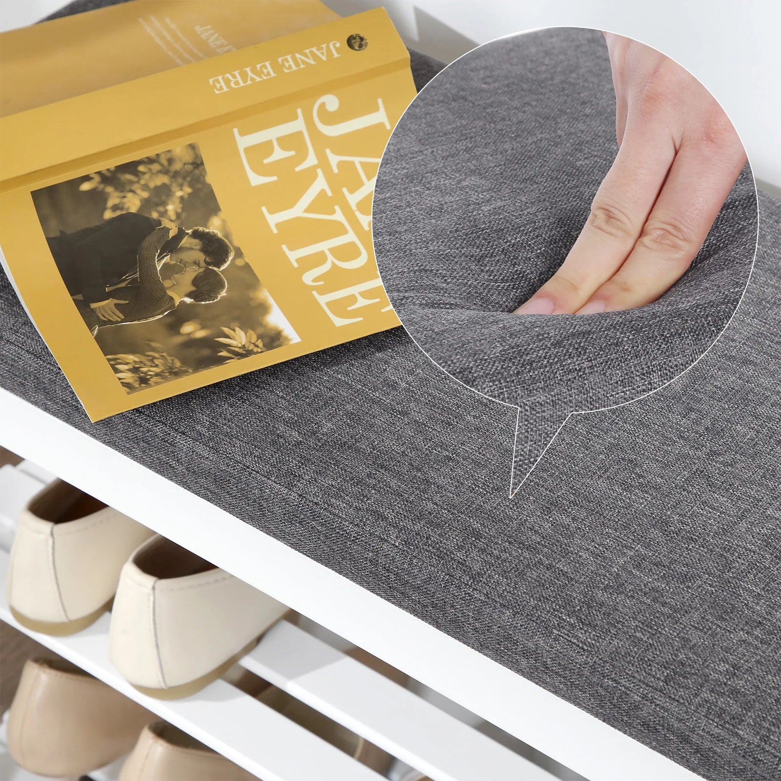 [Sit Comfortably] Forget about the hard, stone-like stools and try this comfortable shoe bench! It comes with 1” thick padding to ensure enjoyable sitting while you change shoes