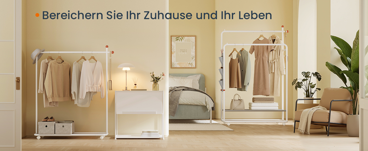 �� EASY TO MOVE AND PRORETIONs″ This dresses stand is equipped with 4 360 ° rotating steering wheels, 2 of which can be latched, so you can easily move it to any desired location and clean the place under the dresses stand