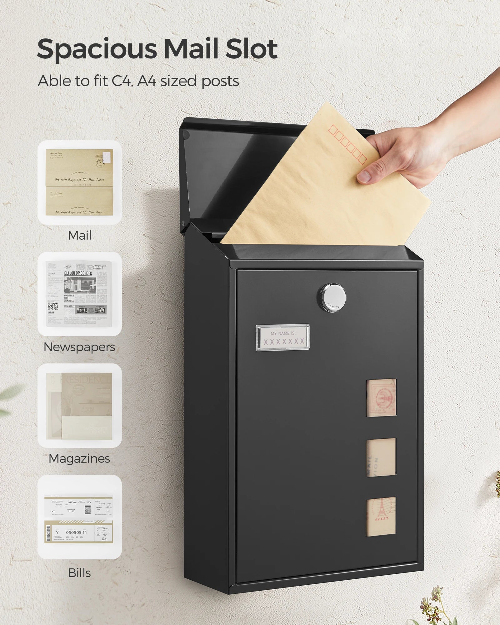 SONGMICS - Modern Wall Mounted Post Box with Viewing Windows, Nameplate, Lock with Copper Core, Easy to Install