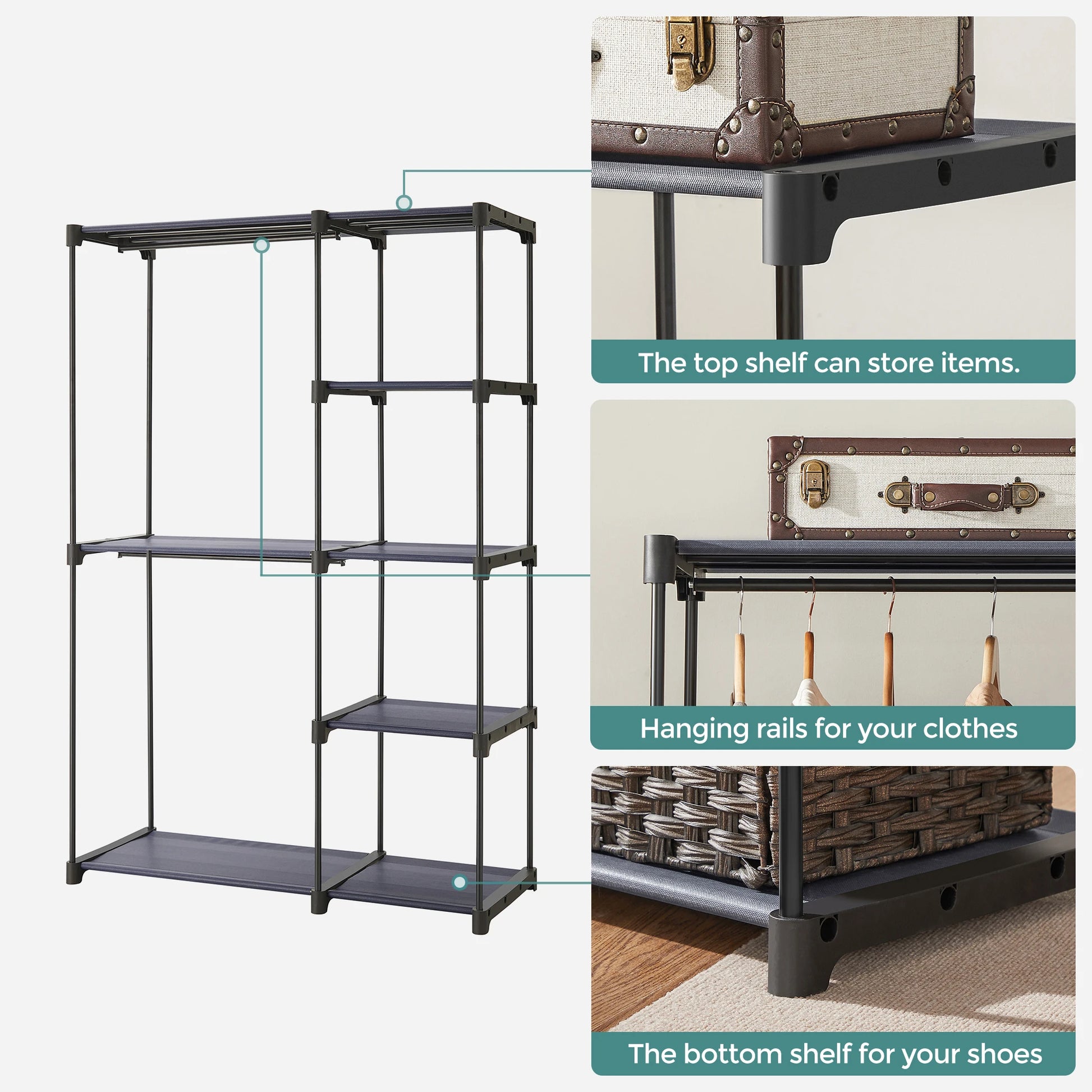 SONGMICS Portable Closet, Freestanding Closet Organizer, Clothes Rack with Shelves, Hanging Rods, Storage Organizer